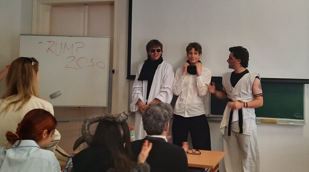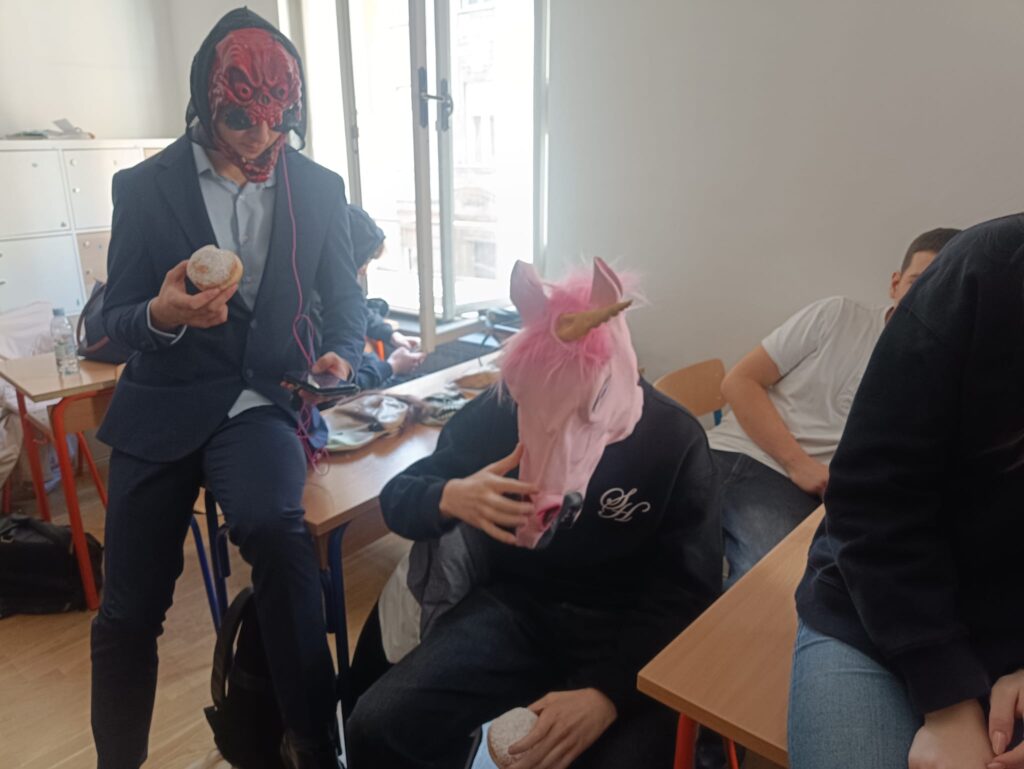 Nakon prvih nekoliko sati nastave krećemo sa predstavljanjem po razredima – profesori predstavljaju svoje maske učenicima, a učenici profesore podučavaju najnovijim likovima iz svijeta mangi, TV serija, igrica i filmova. Bude naravno i tradicionalnih prepoznatljivih lutaka, klaunova, liječnika, svećenika i svega što bi se na jednom razbarušenom PUGovskom karnevalu i očekivalo vidjeti.