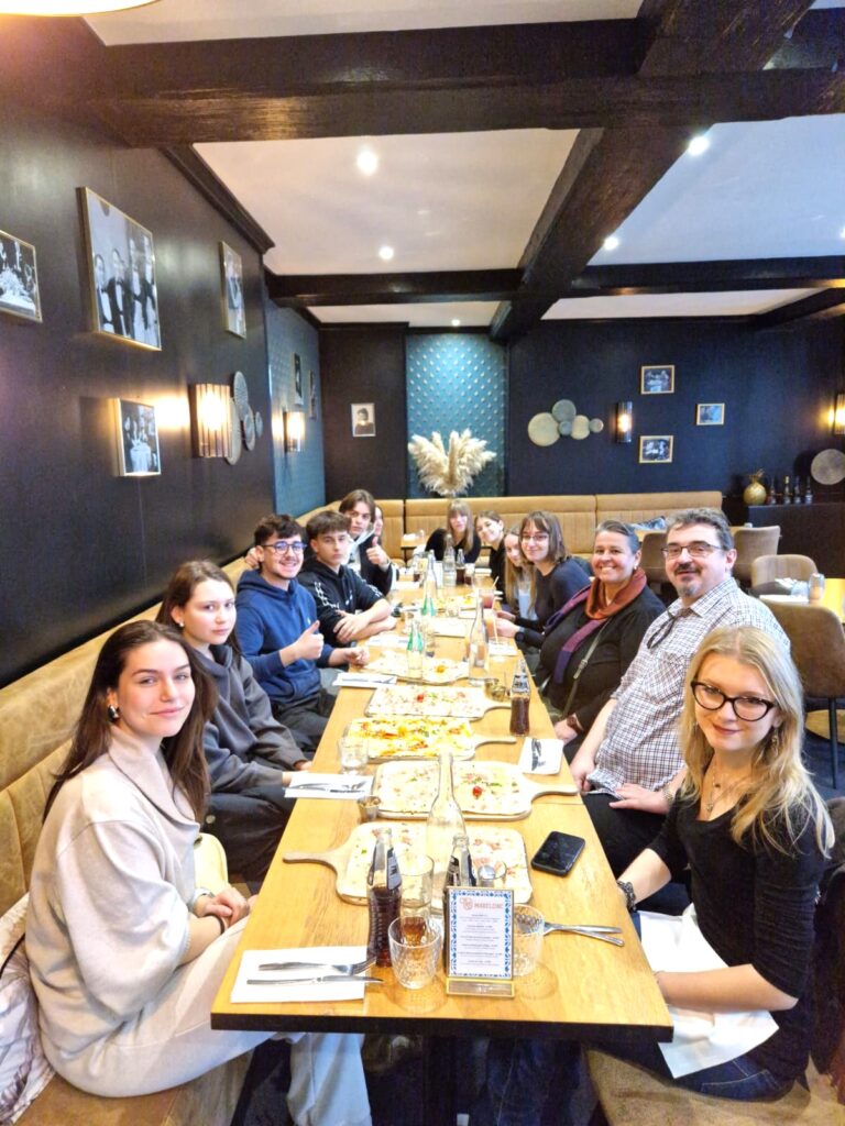 Tradicionalno, ručak u restoranu na glavnom gradskom trgu uz omiljene Flammekueche (što baš i nije lokalno nego alzaško jelo, ali sirevi na njima su svakako lokalni)