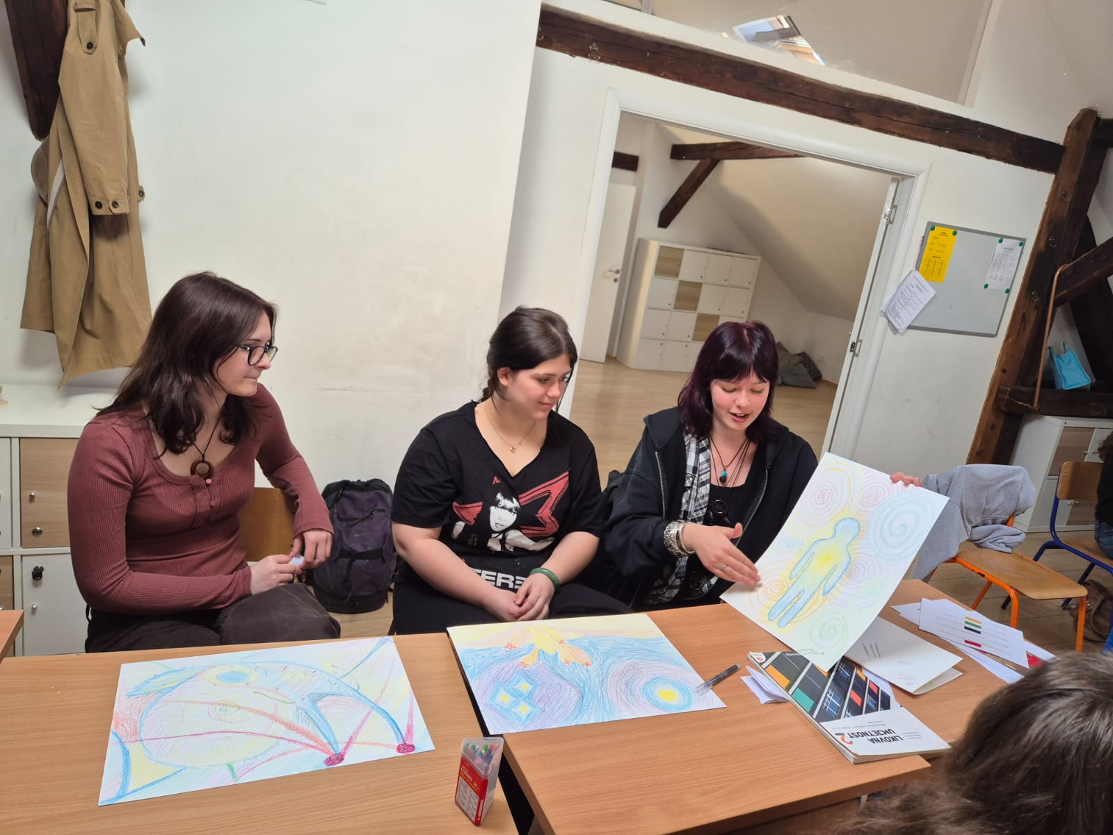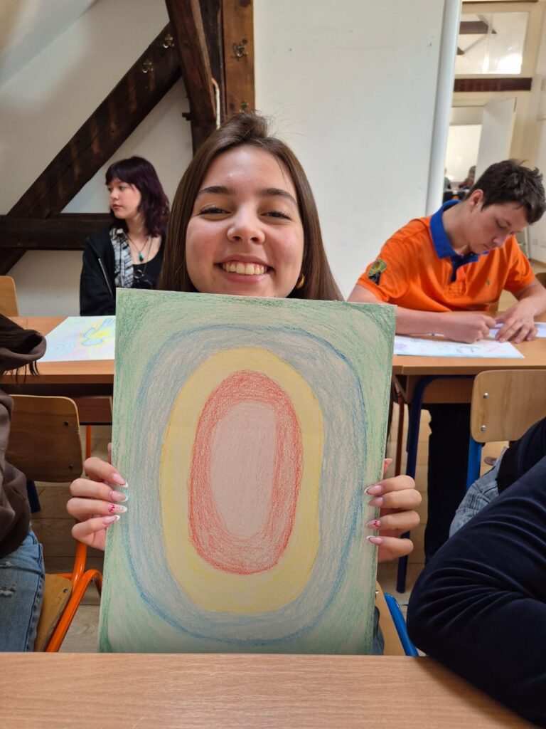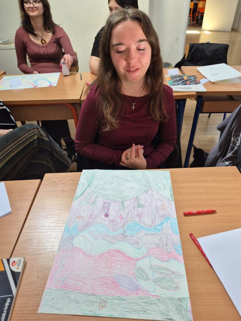 Učenici drugog razreda imali su priliku sudjelovati u istraživanju o duhovnosti i simbolici boja. Naša bivša učenica i stipendistica Paulina Marija Vukoja završava Likovnu akademiju pa je dio istraživanja za svoj diplomski rad posvećen navedenoj temi izvela s našim učenicima.