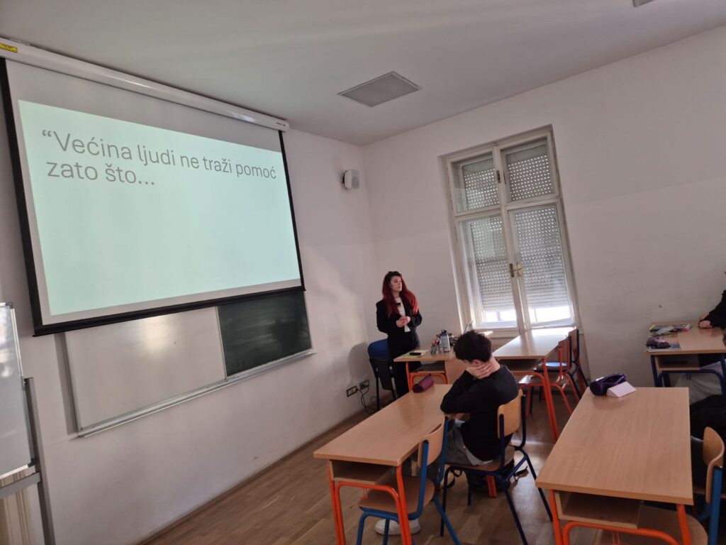 U sklopu kontinuirane brige za dobrobit i mentalno zdravlje učenika, u našoj je školi održan ciklus edukativnih predavanja posvećenih upoznavanju s relevantnim udrugama i institucijama kojima se mladi mogu obratiti u trenucima potrebe za podrškom. Predavanja su realizirana tijekom sati razredne zajednice, a vodila ih je profesorica filozofije, logike i etike u suradnji s razrednicima, s jasnim ciljem – osnažiti učenike da prepoznaju važnost traženja pomoći te im konkretno pokazati gdje i kako to mogu učiniti.