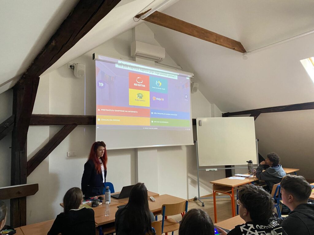 Tijekom predavanja učenici su detaljno upoznati s radom organizacija poput Hrabrog telefona, platforme Help4U, Red Buttona te Centra za zdravlje mladih. Svaka je od navedenih inicijativa predstavljena kroz praktičan i njima blizak pristup: zajedno smo prolazili njihove mrežne stranice, analizirali mogućnosti koje nude te razgovarali o konkretnim situacijama u kojima se učenici mogu obratiti za pomoć. Poseban naglasak stavljen je na to tko se nalazi „s druge strane“ – stručne osobe poput psihologa, savjetnika i educiranih volontera – kako bi se smanjila eventualna nelagoda i neizvjesnost vezana uz prvi kontakt.