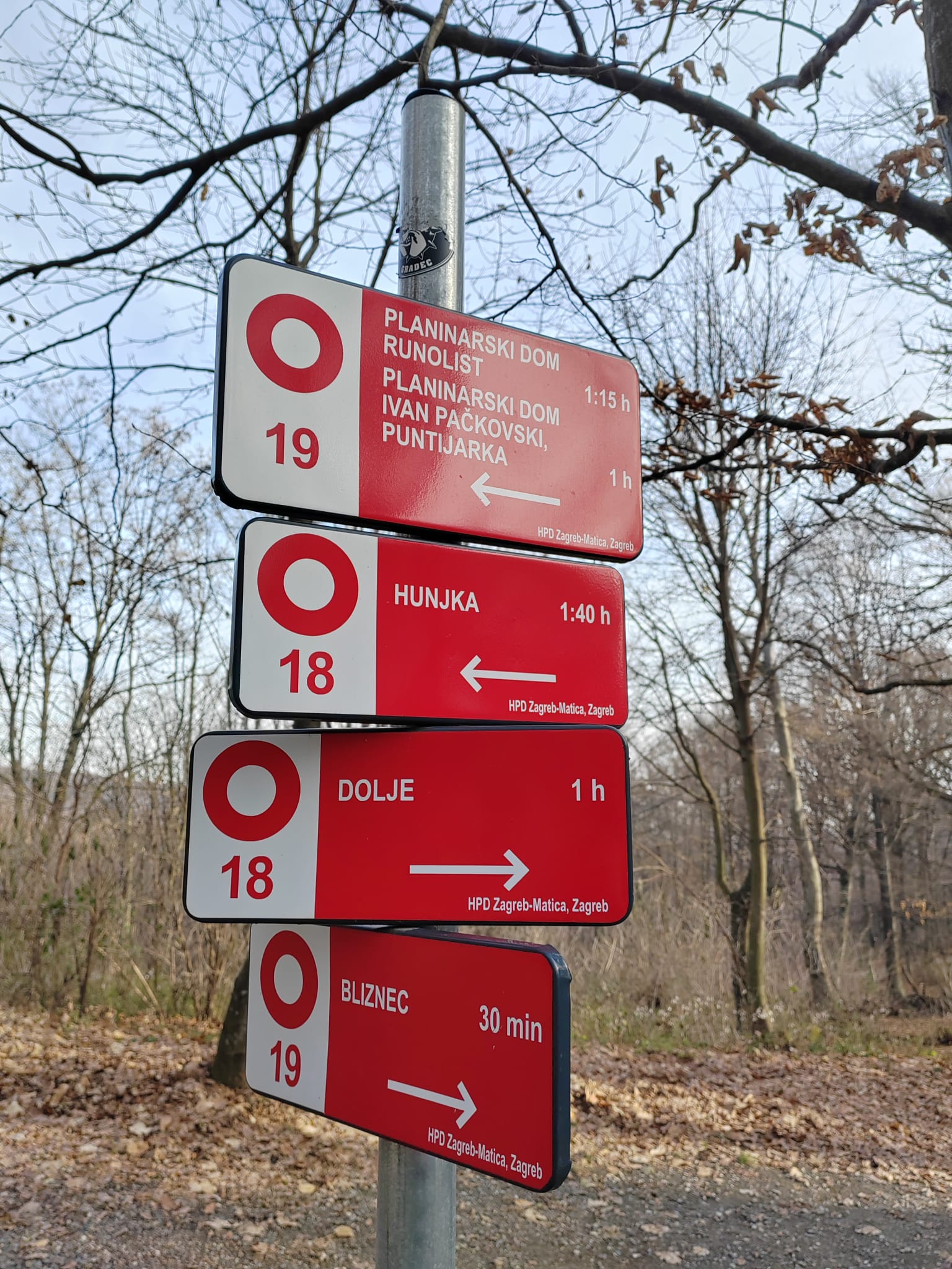 Istraživali smo manje poznate staze na Sljemenu, pa smo tako krenuli stazom broj 19 i nastavili stazom broj 18 prema Hunjki, a zatim preko Puntijarke do vrha.