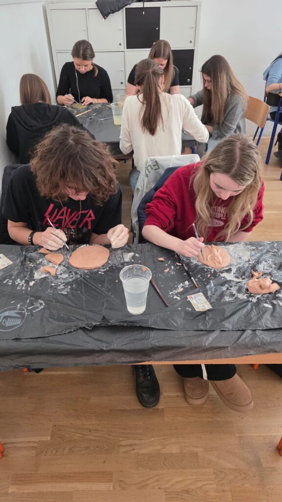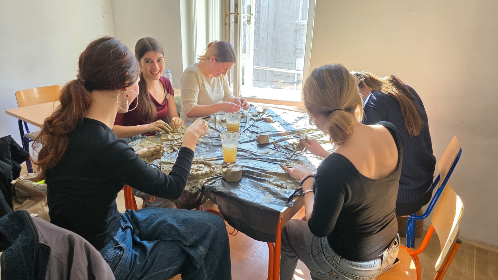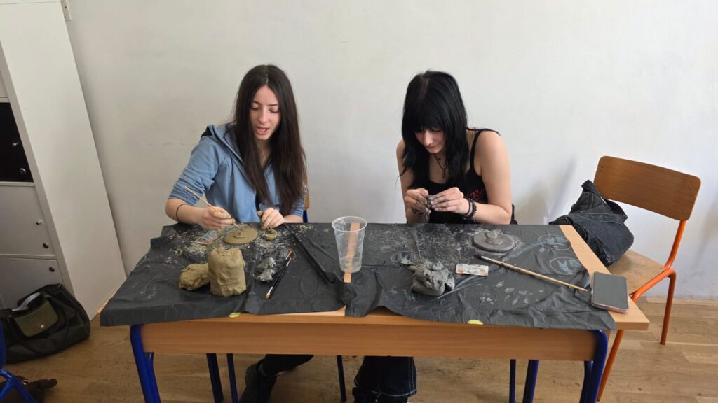 Likovnjaci su prvo zaštitili stolove (vrlo pohvalno!) a onda se bacili na modeliranje.