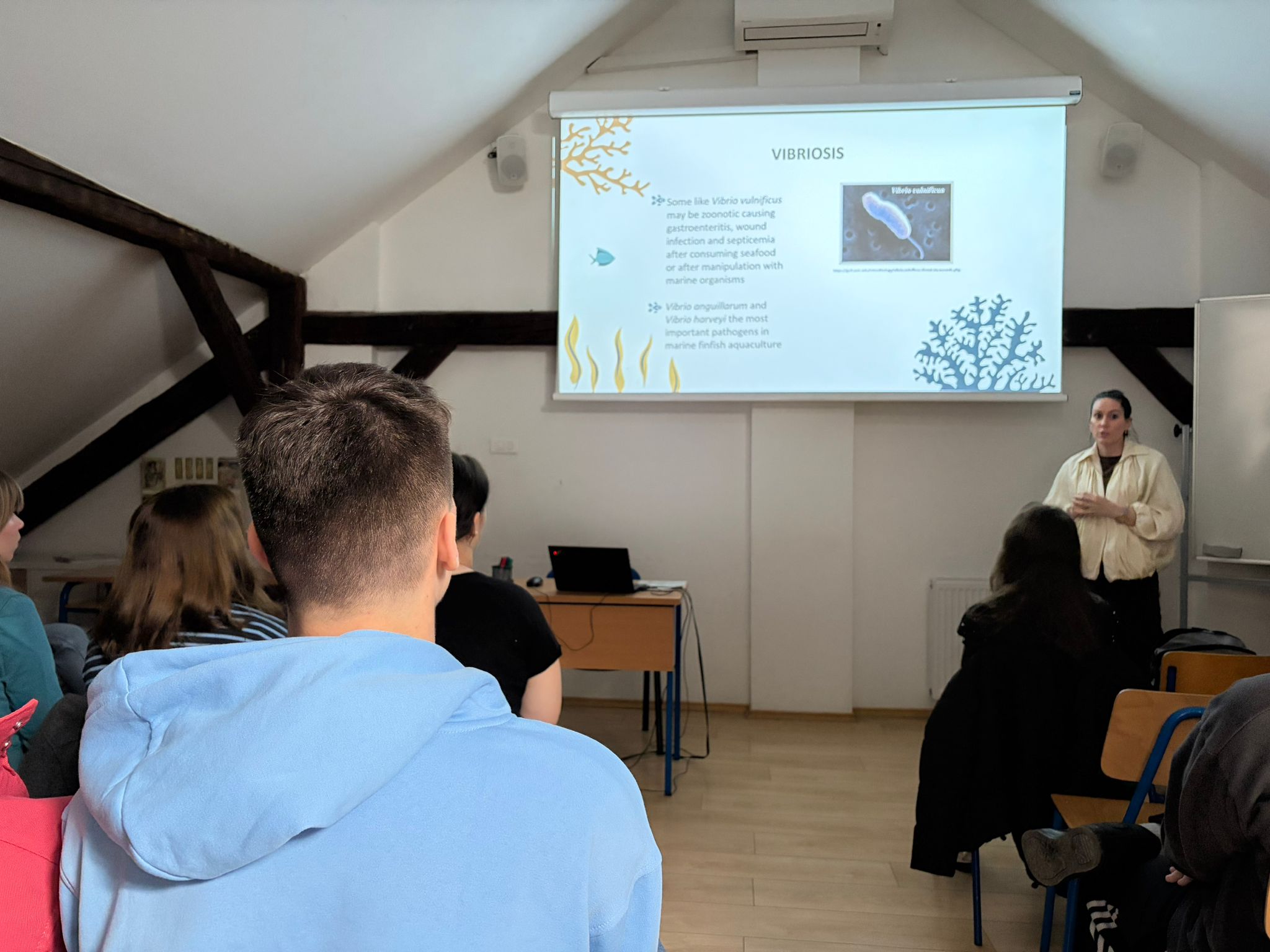 Tijekom predavanja učenici su saznali što nam znanost može otkriti o ribama koje svakodnevno konzumiramo – od važnosti pravilnog označavanja ribe, preko bolesti koje mogu zahvatiti ribe i čimbenika koji na njih utječu, pa sve do novih pristupa liječenju i prevenciji bolesti uz primjenu umjetne inteligencije.