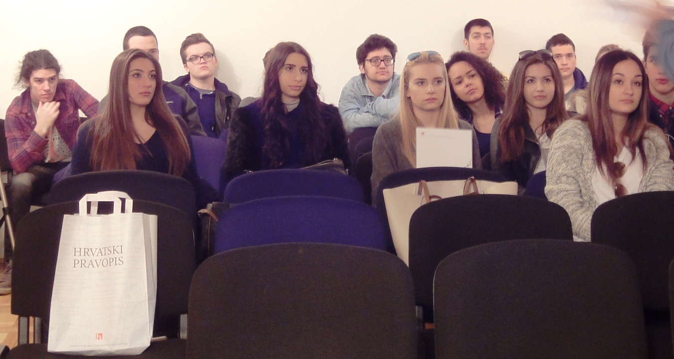 U sklopu Mjeseca hrvatskog jezika koji se obilježavao od 21. veljače do 17. ožujka posjetili smo Institut za hrvatski jezik i jezikoslovlje koji nam je velikodušno otvorio svoja vrata. Ta važna ustanova osnovana je još 1948. sa zadatkom završavanje velikog Rječnika hrvatskog ili srpskog jezika, a do danas je izdala niz važnih djela koja i mi koristimo u nastavi. Među njima svakako treba istaknuti novi Hrvatski pravopis, ali i nama zanimljiv priručnik pod imenom Hrvatski na maturi.