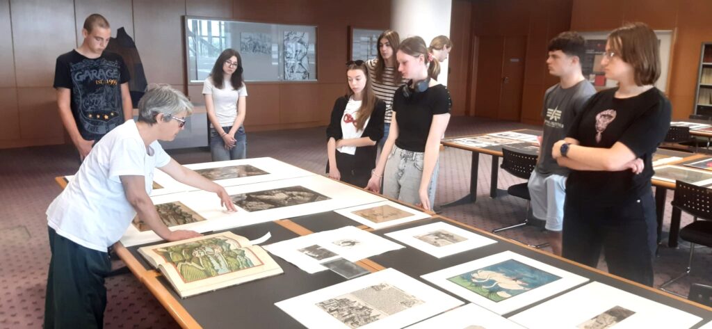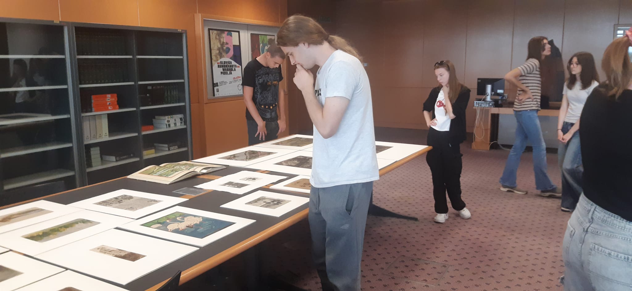 A posebno su imali priliku vidjeti i čuti nešto više o odabranim primjercima grafičke zbirke koja je sastavni dio knjižnične građe te se upoznati s knjižnicom, njezinim radom i djelovanjem.