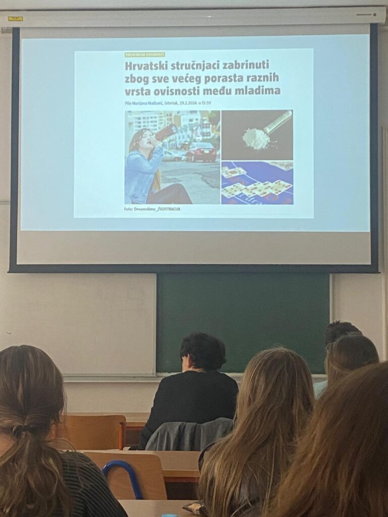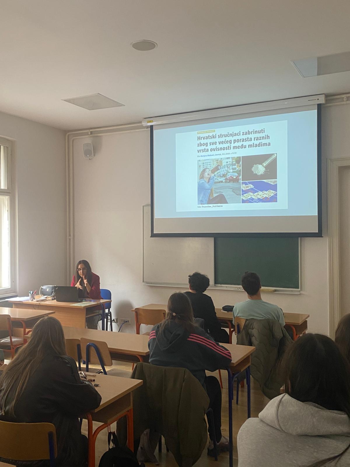 Predavanje je održala doktorica Lea Kozina koja je učenicima na razumljiv i pristupačan način objasnila što su ovisnosti, kako nastaju te zašto su opasne.