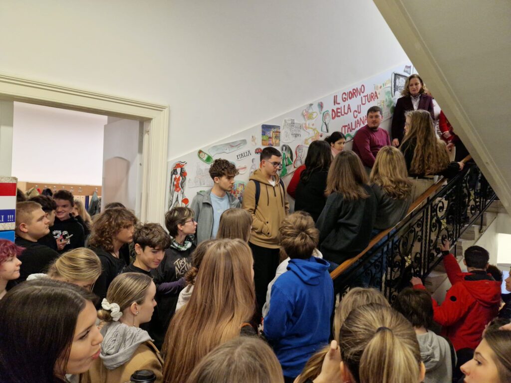 Sve je počelo svečanim otvaranjem pred cjelokupnom učenničkom populacijom okupljenom na stepeništu kroz cijelu zgradu, a onda smo se razmilili na gornja tri kata sve skupljajući pečate u putovnicama (nije to banalna stvar – 12 pečata donosi peticu! 😉 )