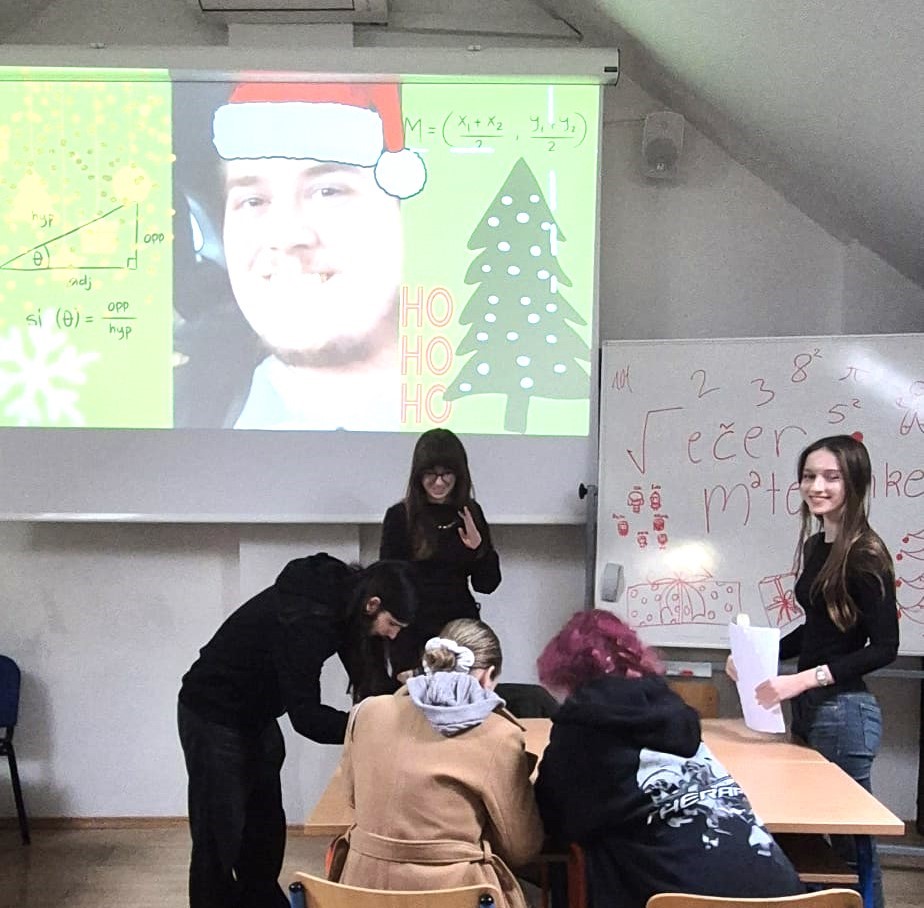 U učionicama u potkrovlju učenike su čekali šesterokuti, jelka i njeni kutovi, Božićni hidoku, radionica (de)šifriranja, otkrivanje zakonitosti i vesele postaje poput Staze Djeda Mraza, Matematičke ekspedicije i, naravno, Čovječe ne ljuti se!