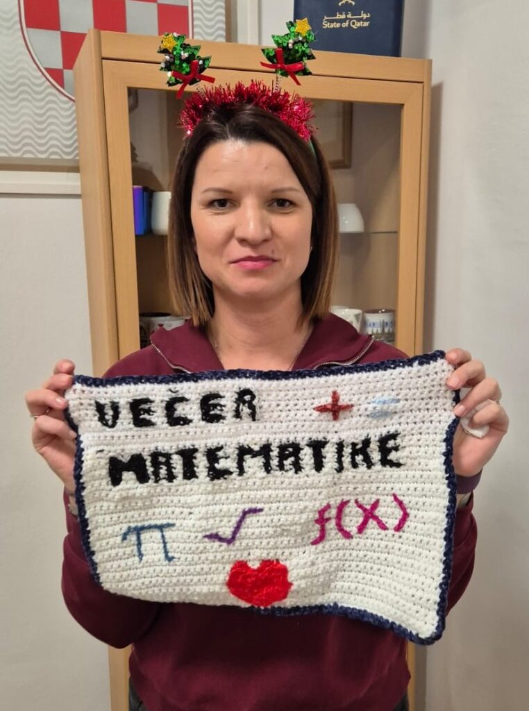 Ovo je prvi put da je netko od učenika, pored uobičajenih plakata kojima okitimo cijelu školu , izvezao “tabletić” za Večer matematike!
